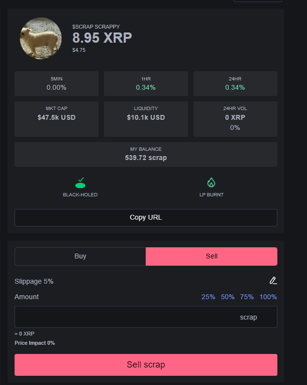 You will be in sell mode once the color changes to red. You can now either type in the amount of the token youd like to sell or click one of the pre defined %s above the text field.&#x20;